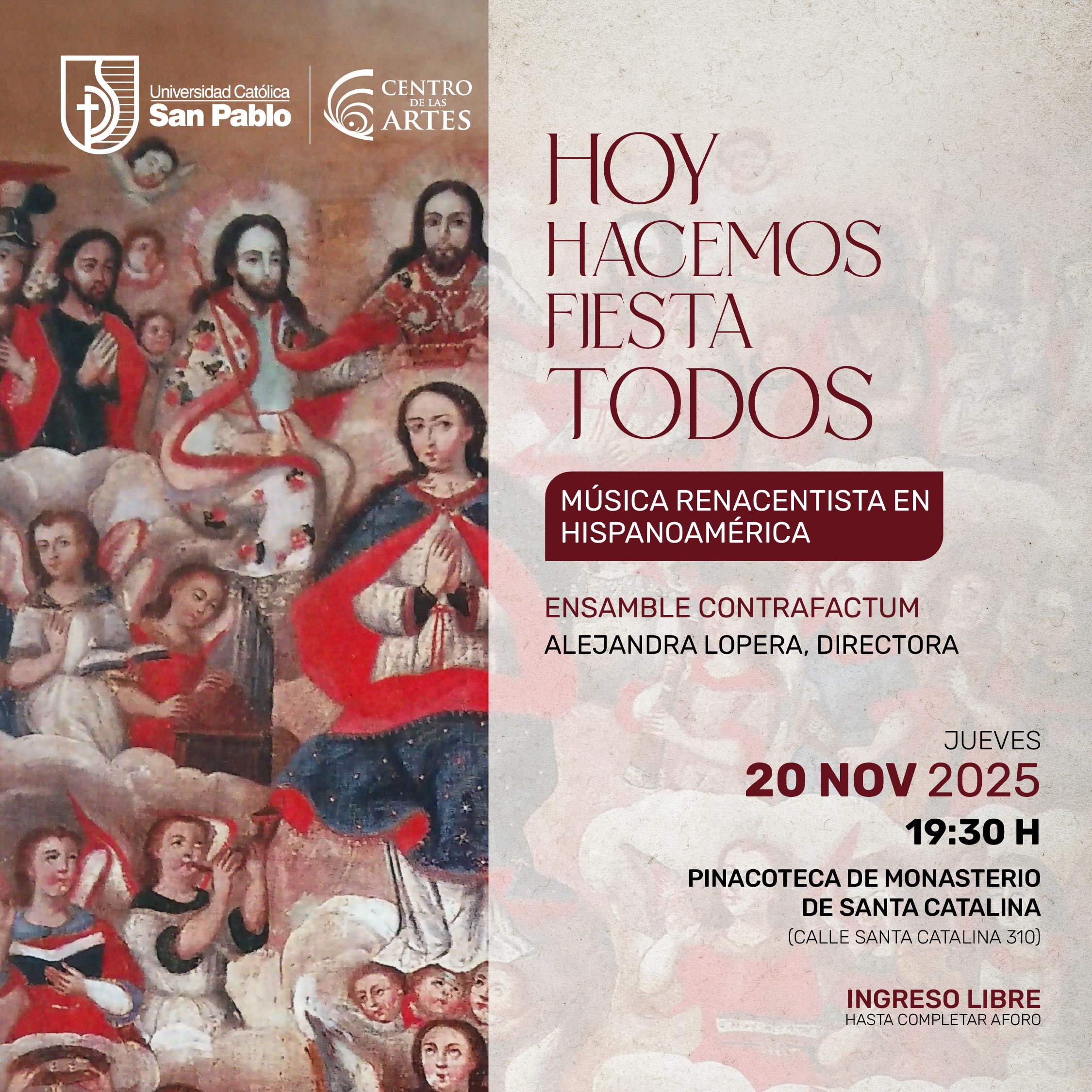 El Centro de las Artes de la UCSP te invita al primer viaje musical de Contrafactum, que da nuevo texto a melodías existentes. Una invitación a redescubrir nuestras raíces y, al conocer el pasado, construir juntos un mejor fu